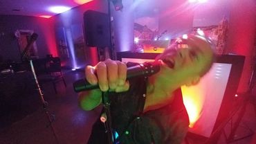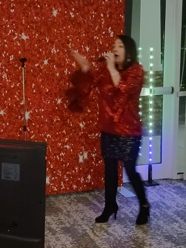 One of Karaoke participants at a Christmas party.